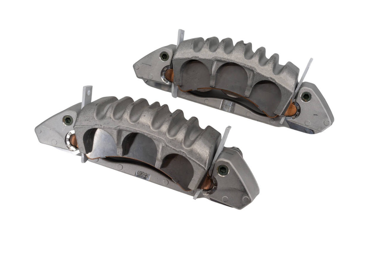 Front Brake Components: The heart of the system is genuine Polaris Pro-R front calipers, which are significantly larger and more powerful than the stock Xpedition units. These calipers are paired with larger-diameter rotors for increased thermal capacity and stopping power. TPR manufactures custom caliper mounting brackets that are precision-machined to adapt the Pro-R calipers to the Xpedition's front suspension geometry. These brackets are engineered specifically for this application to ensure proper alignment and optimal performance.